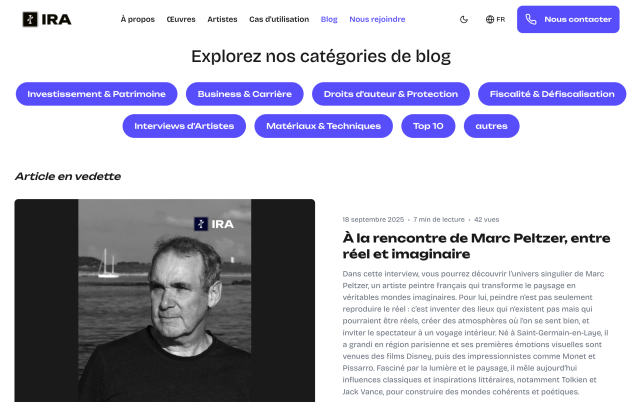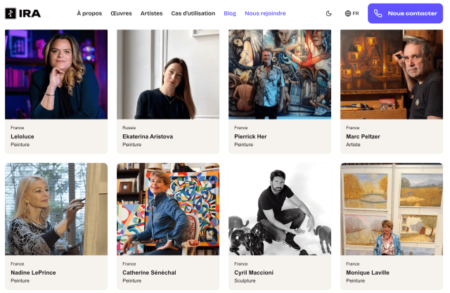 Entièrement gratuit et centré sur l’humain, InRealart accompagne +20 artistes cotés dans leur visibilité, leurs opportunités et leurs événements. Grâce à nos partenariats avec des galeries prestigieuses et à notre expertise en marketing, communication et distribution, nous créons un véritable tremplin pour développer votre rayonnement. Plus qu’une plateforme ou une agence de communication, InRealart est une communauté engagée et un réseau professionnel où chaque talent est reconnu, soutenu et valorisé.