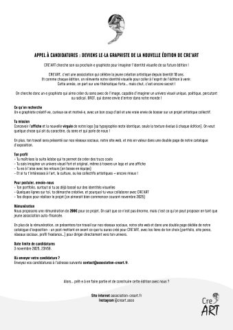CRE’ART cherche un·e graphiste pour créer l’identité visuelle de sa prochaine édition ! 🎨
