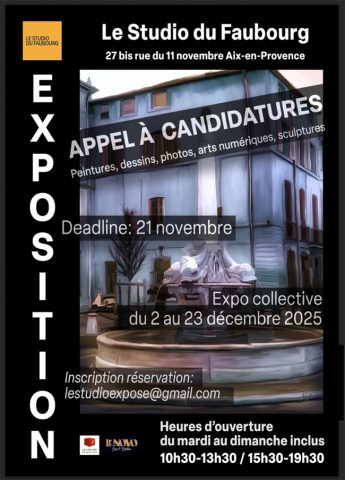 Appel aux artistes pour un exposition collective au Studio du Faubourg à Aix-en-Provence du 2 au 22 décembre 2025.