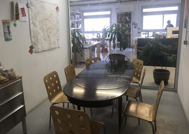 Cet espace indépendant est attenant à un plateau de co – working avec architectes, scénographes, journalistes,…