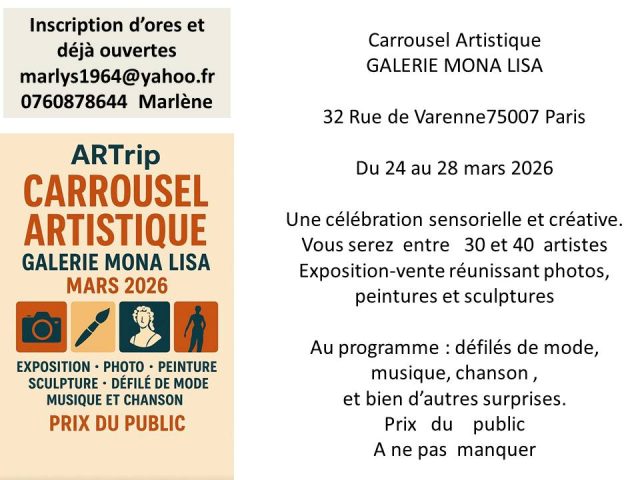Appel a candidature GALERIE MONA LISA 32 Rue de Varenne 75007 Paris Du24au 28 mars 2026