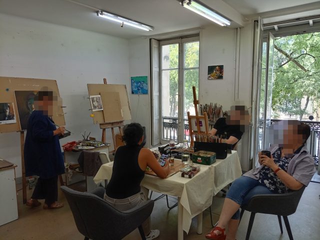 Passation d’un atelier d’art avec materiel pour cours dessin et peinture