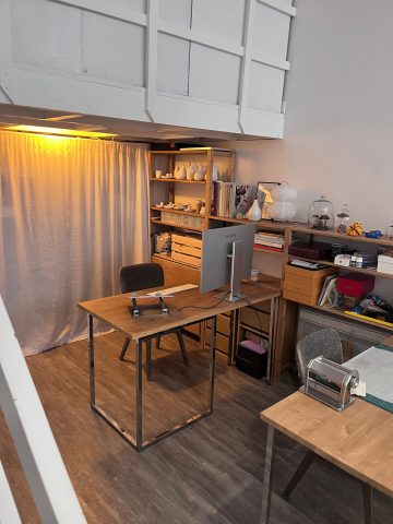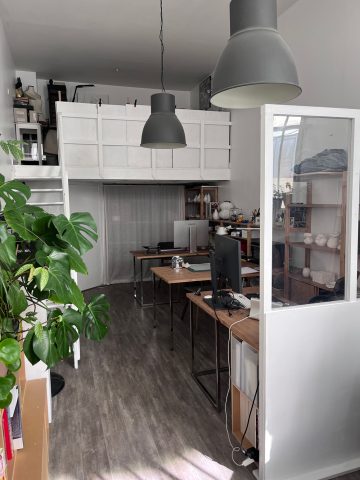Nous disposons d’une place de bureau à l’atelier Jime, situé dans le joli passage Saint-Maur. À la fois calme, vivant, très facile d’accès et entouré de commerces pratiques, l’atelier dispose d’une grande verrière lumineuse, d’une très grande hauteur sous plafond, d’un coin cuisine, d’un espace de détente/réception et d’une zone de stockage. Il y a en tout 4 postes sur l’ensemble de l’atelier (3 au rez de chaussée et un en mezzanine) et c’est celui du fond rez de chaussée qui est libre. Espace individuel de travail de 3m2 + espaces de rangement. 320€/ mois, tout compris. N’hésitez pas à nous contacter en MP pour visiter.