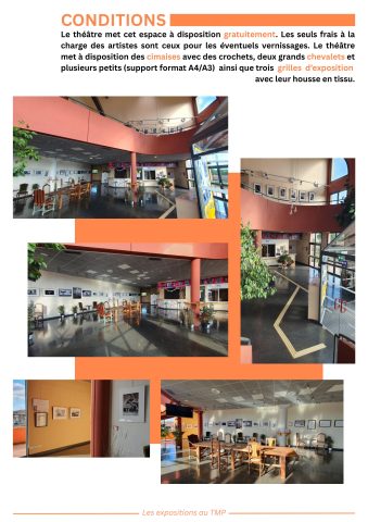 En parallèle de sa programmation spectacle, le TMP propose entre 5 et 10 expositions par an. Le hall est mis à disposition pour les artistes de tous niveaux et tout type de créations plastiques et visuelles (peinture, photographie, illustration, sauf les sculptures pour des raisons de