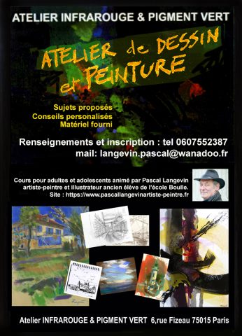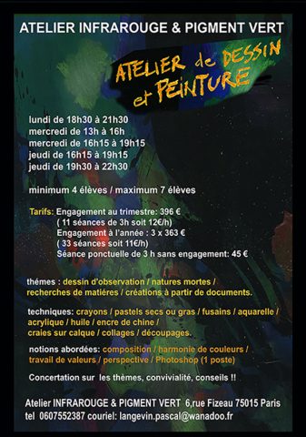 J’anime des séances (3 heures) de dessin et/ou peinture à mon atelier 6, rue Fizeau 75015 Paris