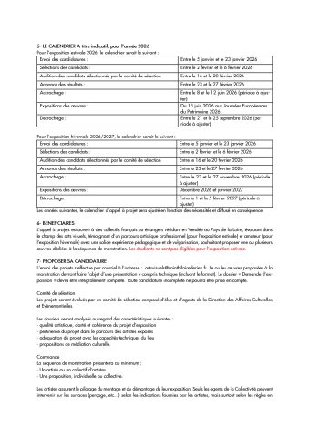 Peinture, sculpture, installation, photographie, vidéo, performance ou projets hybrides : les propositions devront s’adresser à un large public et intégrer une dimension de médiation culturelle.