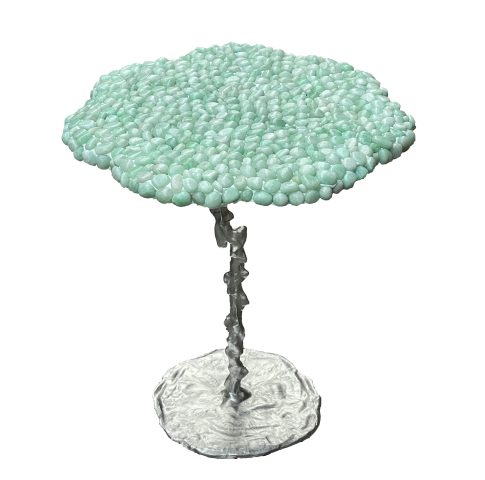 Dans mon studio aux Batignolles, je crée des sculptures, miroirs, luminaires, tables... avec des pierres semi-précieuses.