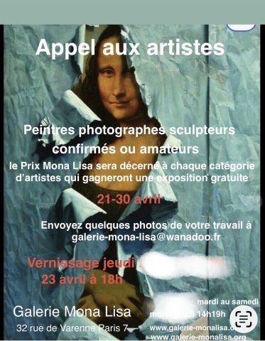 Appel à candidatures pour l’exposition collective avec le Prix Mona Lisa