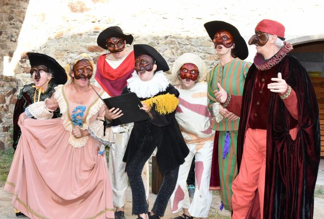 Création collective d’une comédie musicale masquée présentée en public en fin de stage.