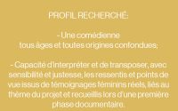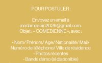 *POSTULER*: Envoyez un email à madamesoin2026@gmail.com. Objet : « COMEDIENNE », avec : (voir slide 3 des visuels de l'annonce pour les élements demandés)