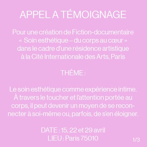*THEME* : Le soin esthétique comme expérience intime. À travers le toucher et l’attention portée au corps, il peut devenir un moyen de se reconnecter à soi-même ou, parfois, de s’en éloigner.